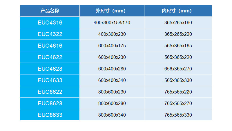 外(wài)尺(chǐ)寸:800×600×340mm 內尺寸:765×565×330mm 材質:PP 重量:6480